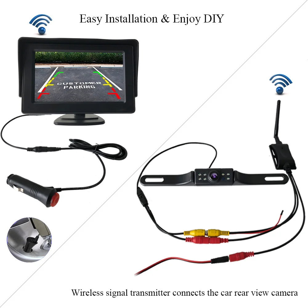 4.3'' TFT LCD Display Car Rear View Camera 170 Degree For Car Bus Car Monitor Reversing Camera IR H