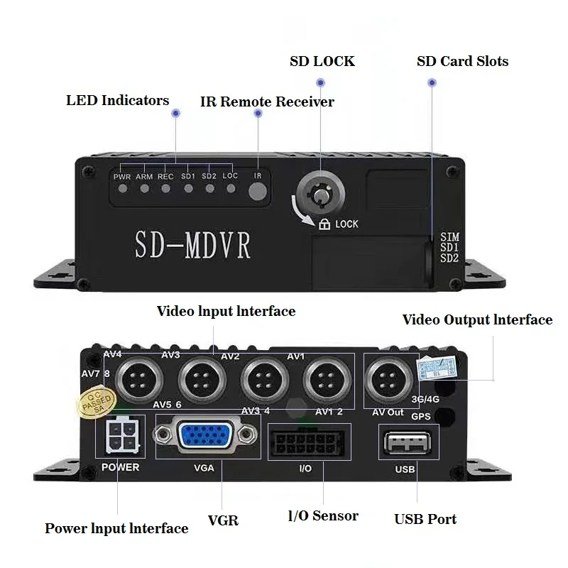 4CH SD card high-definition vehicle mounted aerial video recorder MDVR 720P simulation coaxial pass